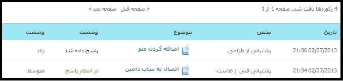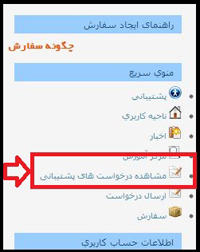 7- پس از ارسال درخواست، یک درخواست با شماره پیگیری مشخص برای شما ثبت میشود برای پیگیری آن کافی است از منو سمت راست گزینه " مشاهده درخواست های پشتیبانی " را بزنید .