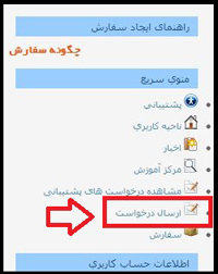 2- در منو سمت راست گزینه " ارسال درخواست " را کلیک نمایید .