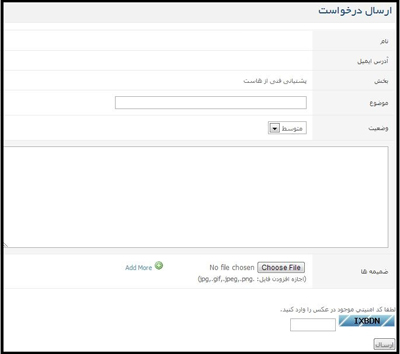 در پایان کد امنیتی را وارد و درخواست را ارسال نمایید .